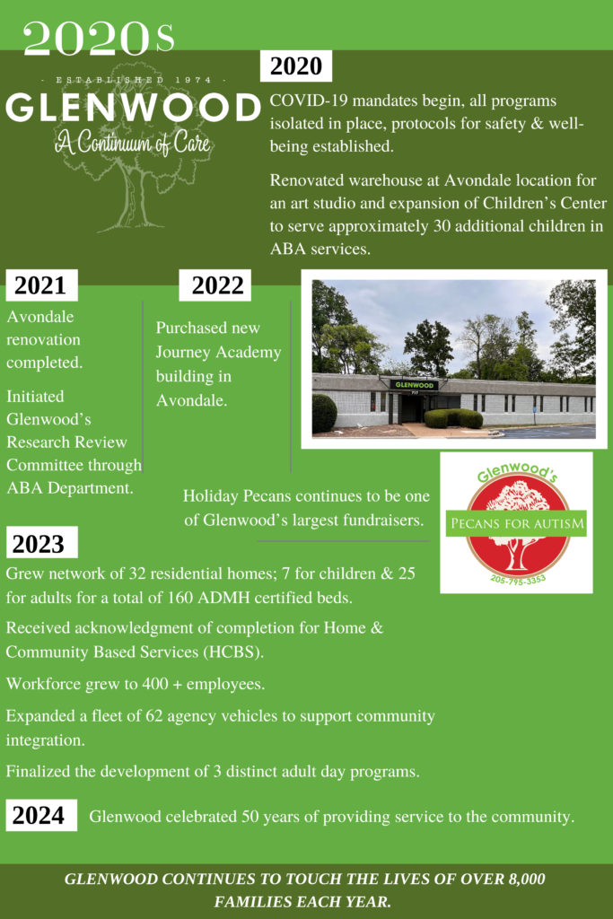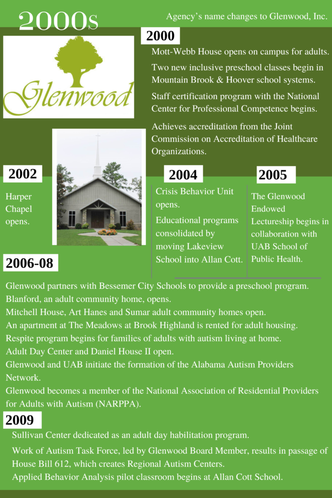 Glenwood currently touches the lives of more than 8,000 families each year through over 40 programs that include diagnostic services, residential support, early intervention/education, and teacher trainings.
