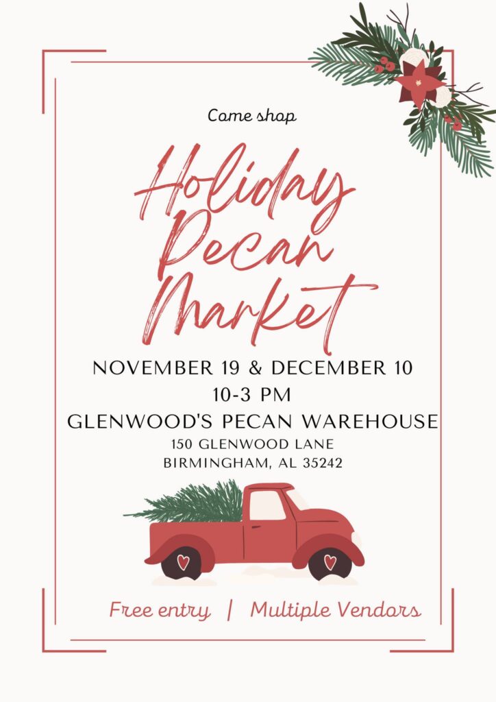 In conjunction with our Holiday Pecan Sale, We will also be hosting Holiday Markets November 19th & December 10th from 10 am – 3 pm located on campus at Glenwood’s Pecan Warehouse located at 150 Glenwood Lane. Multiple vendors will be present and we will be selling our pecans!