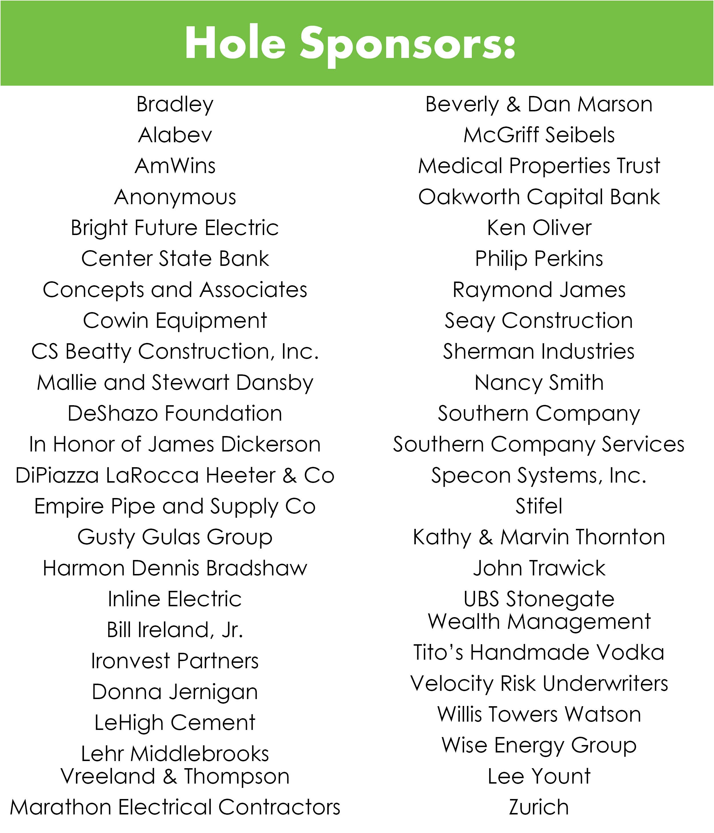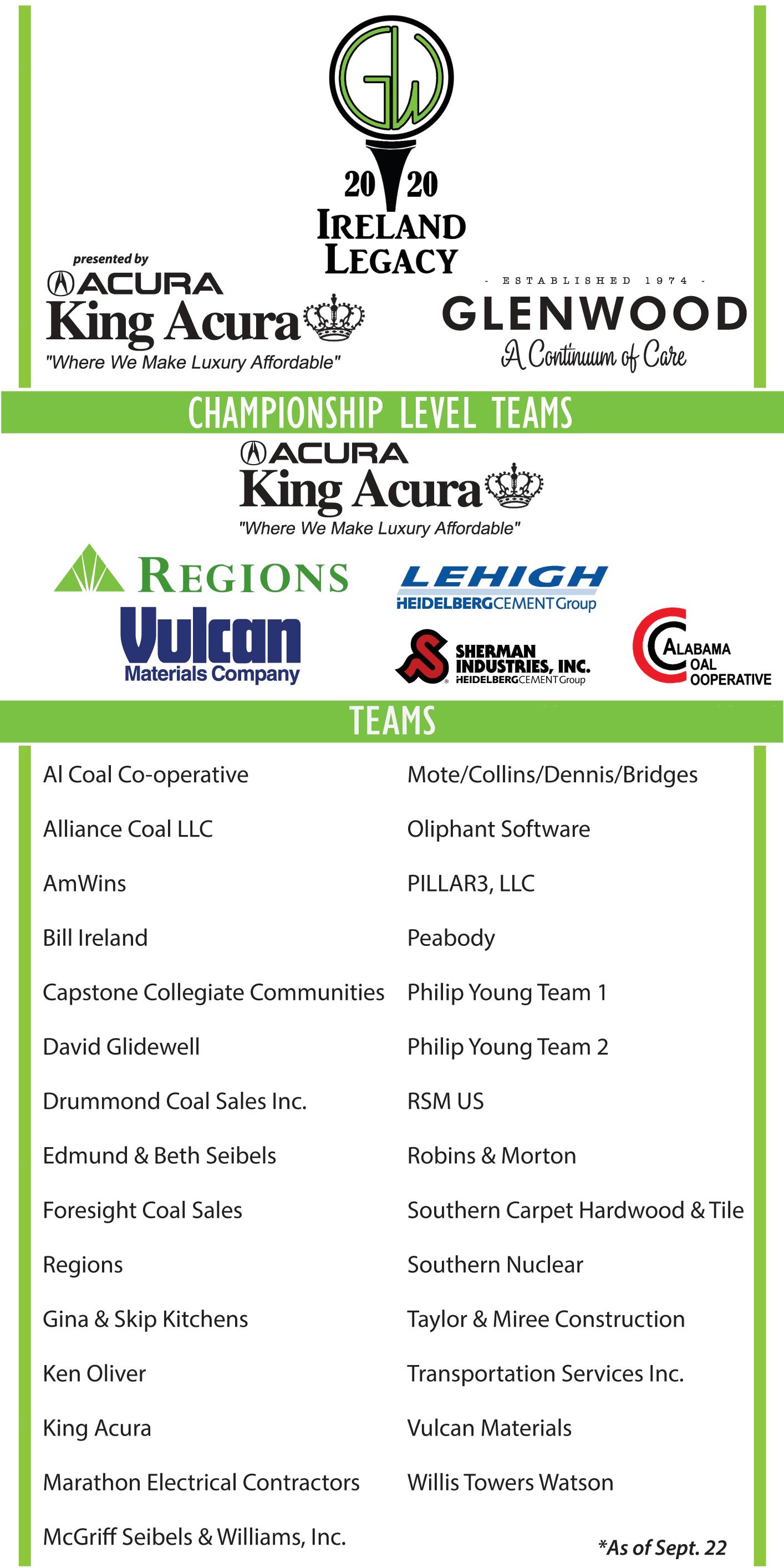 Monday was a beautiful day for the 28th Annual Ireland Legacy Golf Tournament. We are so grateful to the sponsors and teams for making it our best year yet! We are ecstatic to announce that with their help we raised $164,550! That will go a long way to help adults with autism develop independent living skills.Thank you to our presenting sponsor, King Acura, who has been with us for over 15 years. If you are in the market for a car, go visit them in Hoover and they will take great care of you!