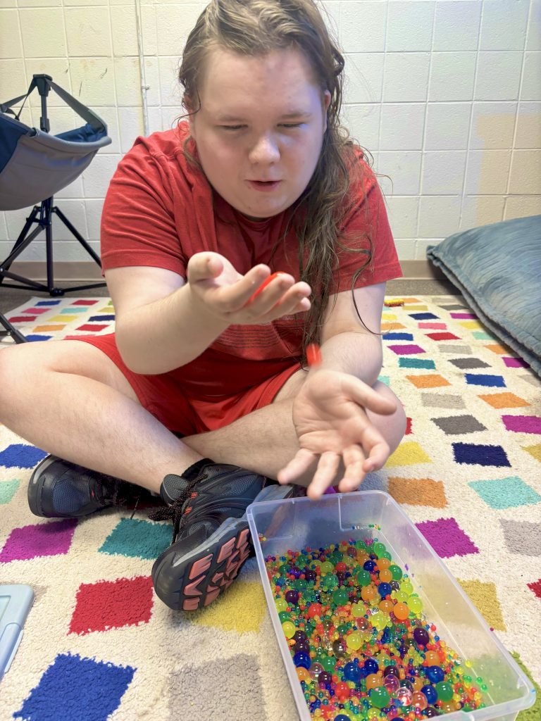From day one, the team worked to gently limit Ollie’s dependence on electronics while introducing him to a variety of new activities and leisure skills. The results have been inspiring. Ollie has worked out in the gym with Glenwood’s recreational coordinator, Caleb LaRue, and discovered a love for the treadmill. He has splashed in the pool, played simple ball games in the hallway and recorded silly voices to play back for a laugh.